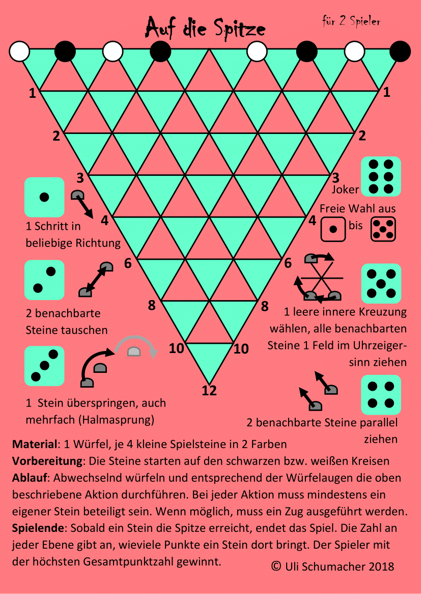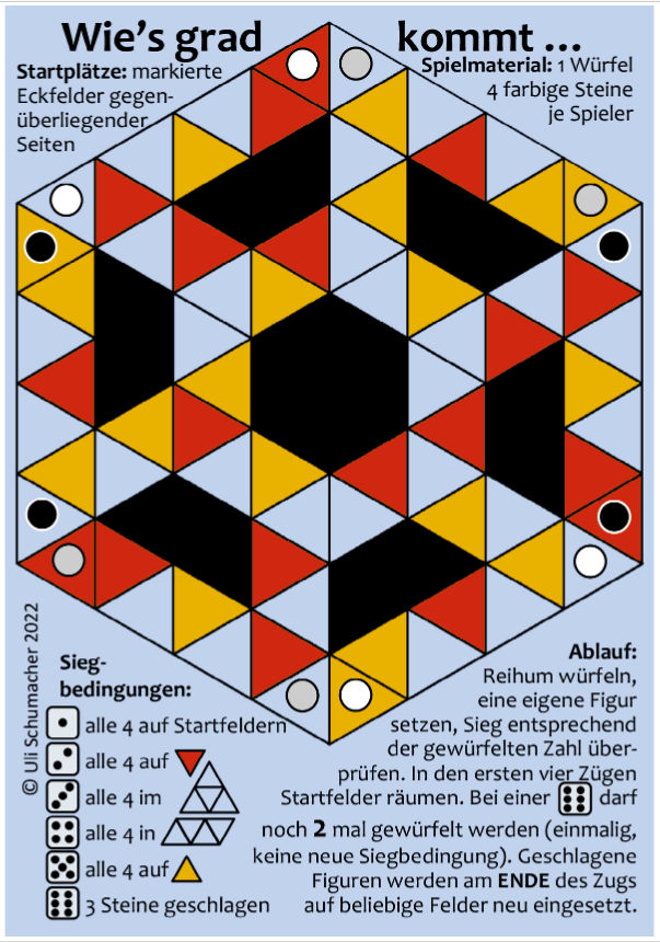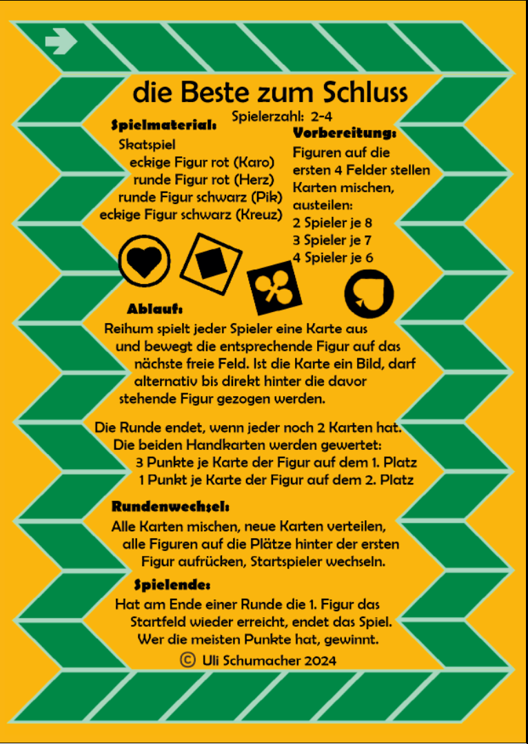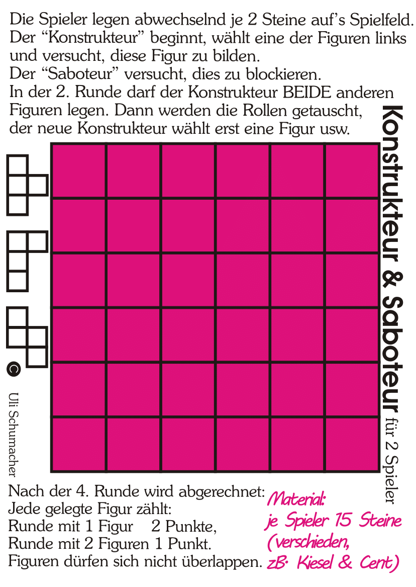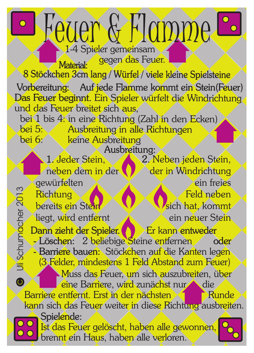 Die größte Herausforderung dabei ist, dass auch die komplette Regel auf der A6-Karte untergebracht werden muss. Falls ihr trotzdem noch Regelfragen habt oder uns einfach nur sagen wollt, welches Spiel ihr für am gelungensten haltet - schreibt uns an Diese E-Mail-Adresse ist vor Spambots geschützt! Zur Anzeige muss JavaScript eingeschaltet sein!.