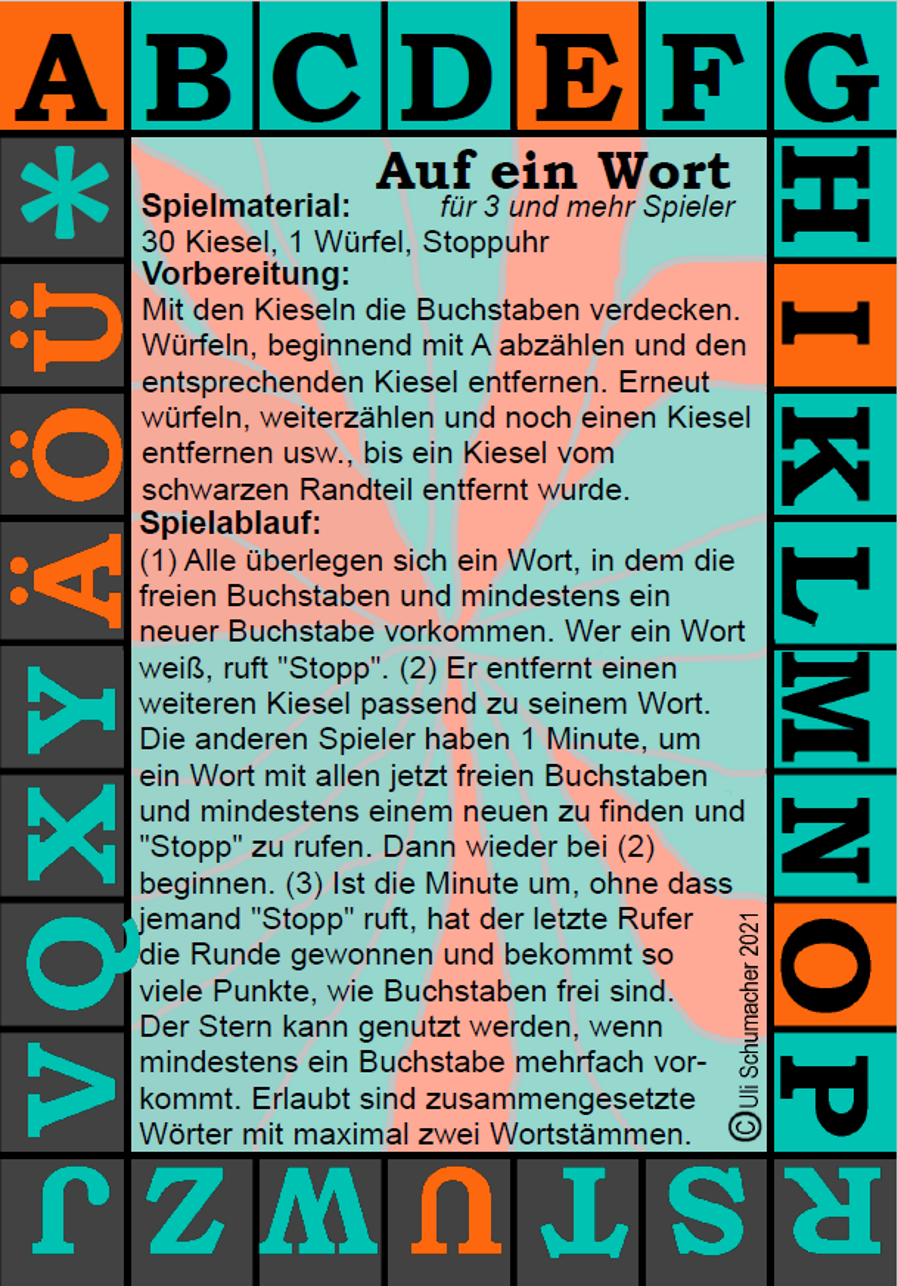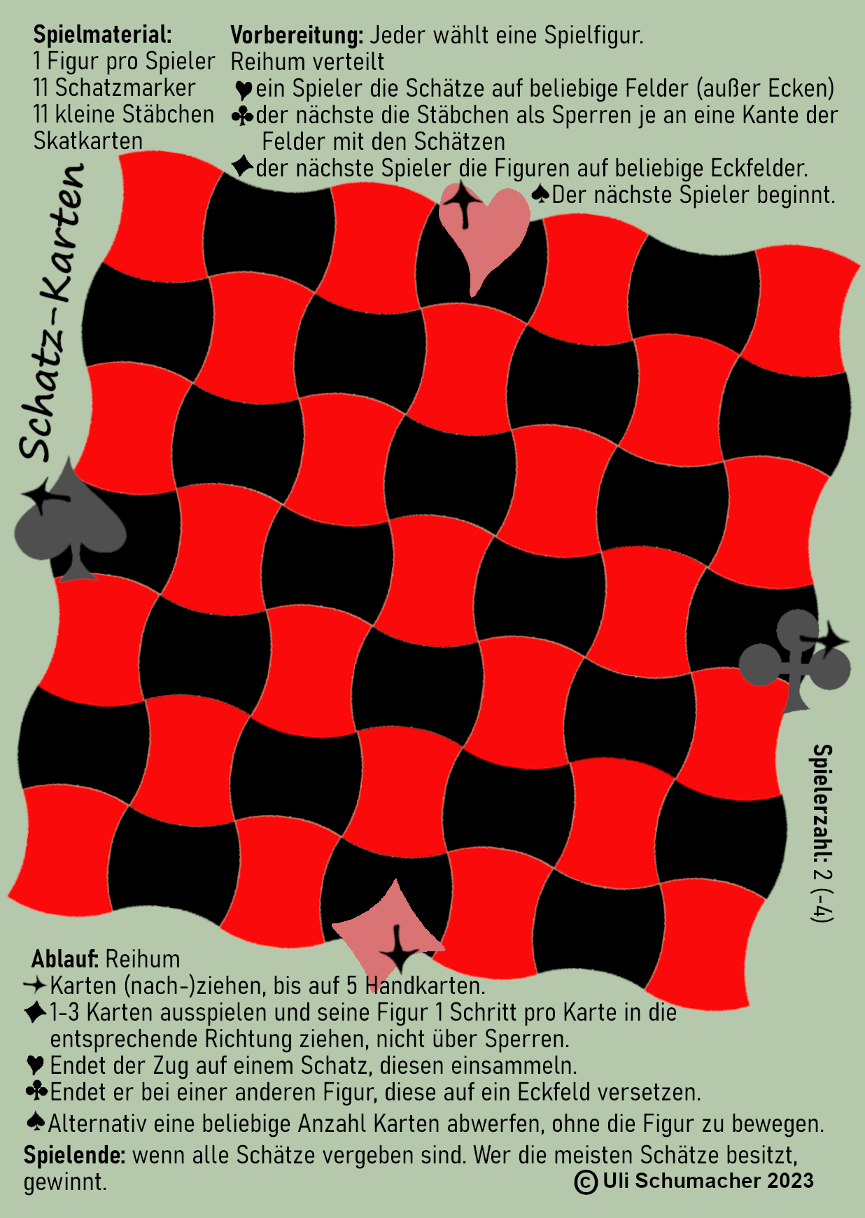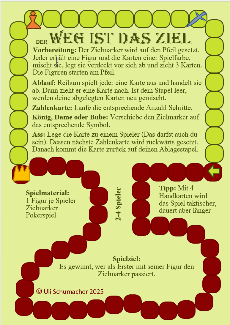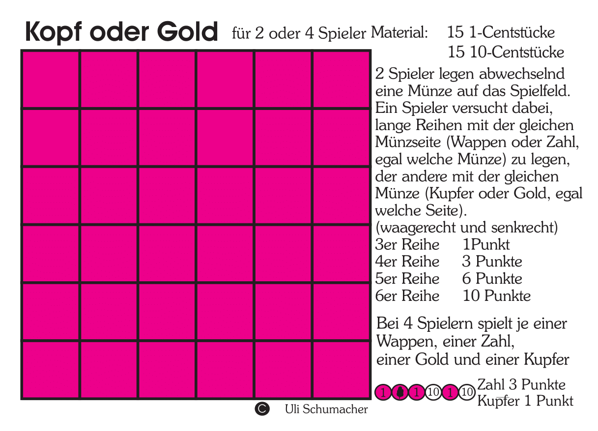 Die größte Herausforderung dabei ist, dass auch die komplette Regel auf der A6-Karte untergebracht werden muss. Falls ihr trotzdem noch Regelfragen habt oder uns einfach nur sagen wollt, welches Spiel ihr für am gelungensten haltet - schreibt uns an Diese E-Mail-Adresse ist vor Spambots geschützt! Zur Anzeige muss JavaScript eingeschaltet sein!.